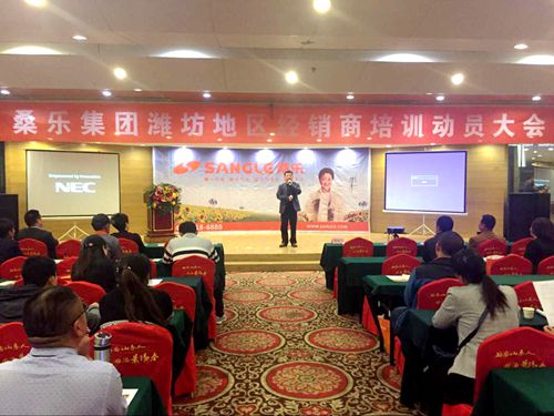 日前,桑樂山東濰坊地區(qū)經(jīng)銷商培訓(xùn)動(dòng)員大會(huì)在濰坊圣基大酒店順利舉行,桑樂集團(tuán)公司副總馮磊、光伏事業(yè)部經(jīng)理?xiàng)罟鸺t蒞臨了本次會(huì)議,并做了重要講話和培訓(xùn)。