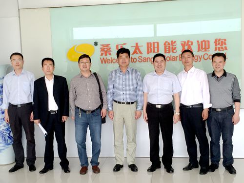 5月26日,江蘇淮陰區(qū)政協(xié)主席葛志勝一行來(lái)桑樂(lè)江蘇公司考察調(diào)研,桑樂(lè)集團(tuán)副總、江蘇桑樂(lè)公司總經(jīng)理張興東陪同調(diào)研。葛志勝主席一行參觀(guān)了江蘇公司產(chǎn)品展廳,聽(tīng)取了桑樂(lè)集團(tuán)副總張興東的詳細(xì)講解,葛主席對(duì)桑樂(lè)集團(tuán)新推出的凈水機(jī)、電熱水器、分布式家庭電站表現(xiàn)出特別濃厚的興趣。