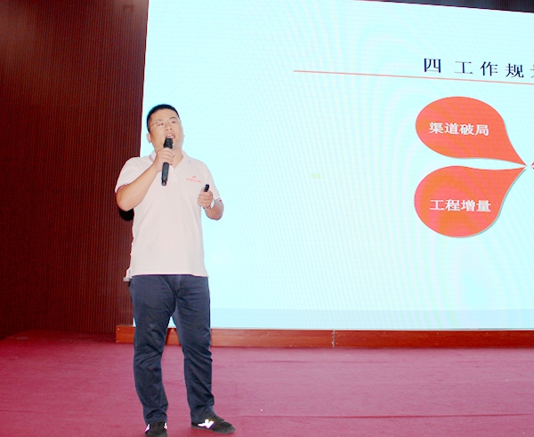 遲總用四個“心”展開了他的報告。他講到要用恒心做市場,用心做工程,以實(shí)現(xiàn)工程市場多點(diǎn)開花,工程無大小,全力爭奪。目前浙江市場是桑樂最大的空氣能市場,在工作中常與核心經(jīng)銷商溝通交流,多解決問題,通過多調(diào)研,多總結(jié),強(qiáng)推廣,多角度支持鄉(xiāng)鎮(zhèn)零售工作。