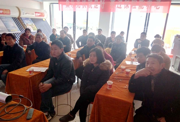 會議前期的宣傳工作至關(guān)重要,先確定了參與活動的鄉(xiāng)鎮(zhèn)及意向客戶,對客戶初步講解光伏政策,光伏收益等提高客戶的興趣,經(jīng)銷商與意向客戶多次參觀桑樂光伏電站發(fā)電設備樣板,對桑樂電站達成初步意向。