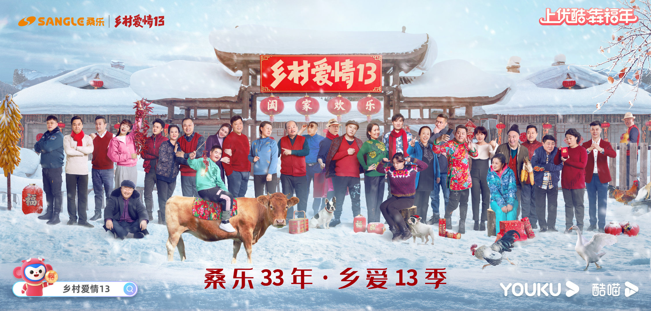 近日,由桑樂贊助的《鄉(xiāng)村愛情13》先導預告,one three版預告片爆笑出擊。據(jù)悉,該劇將于春節(jié)期間在優(yōu)酷全網(wǎng)獨播,桑樂將與大家一起歡笑過大年!